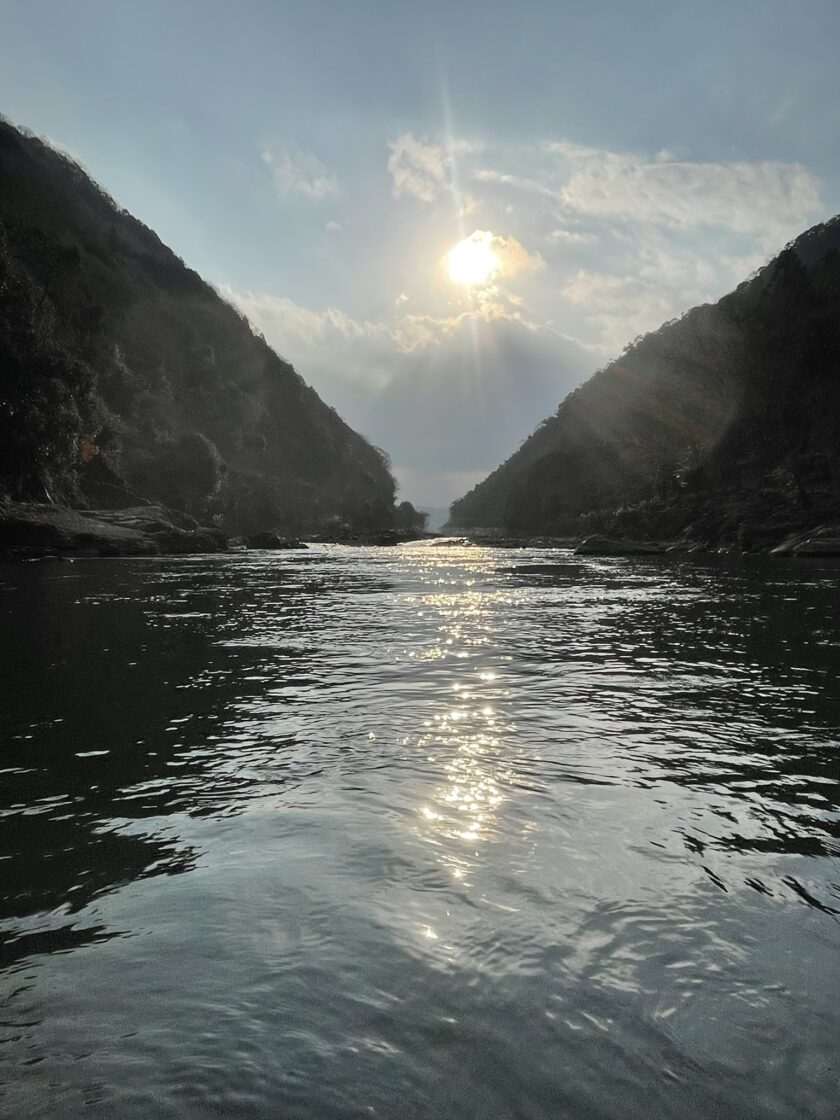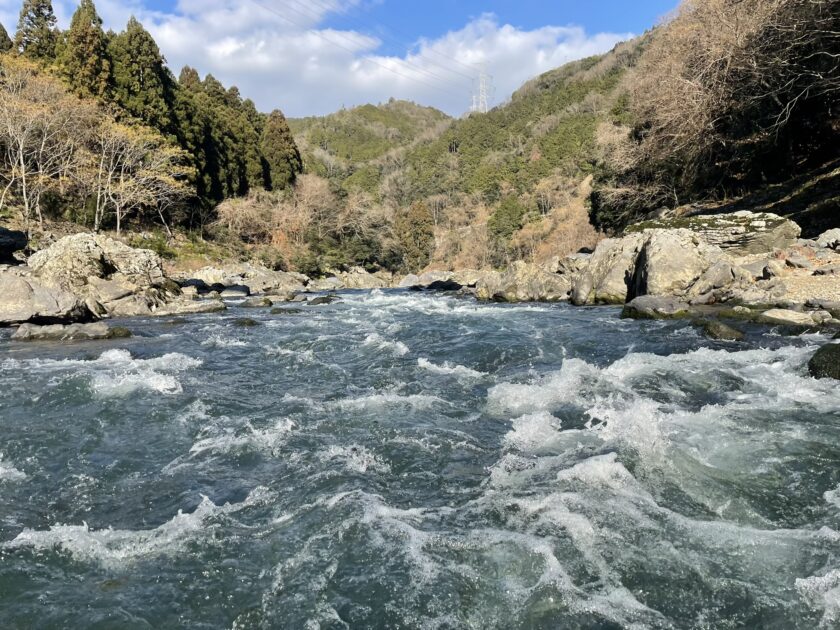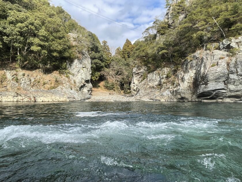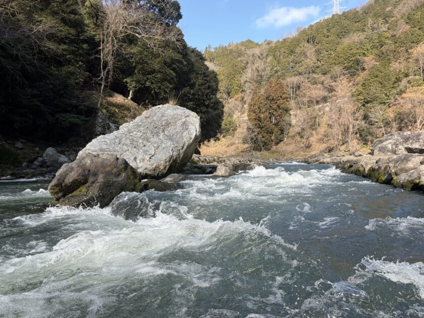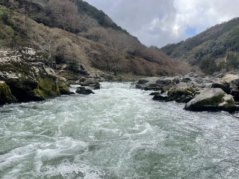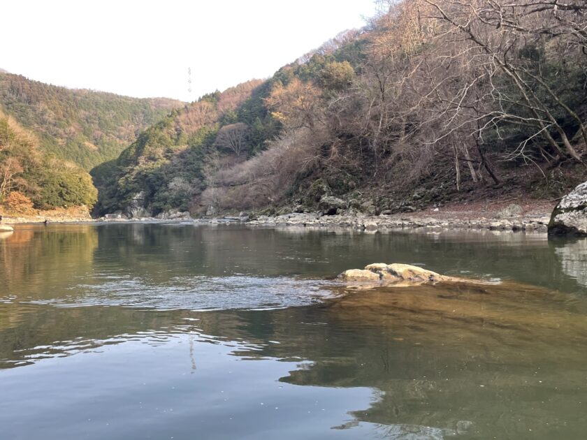 『師走』 朝日の瀬 🌊        正面に見えるは保津峡最大巨岩『孫六岩』