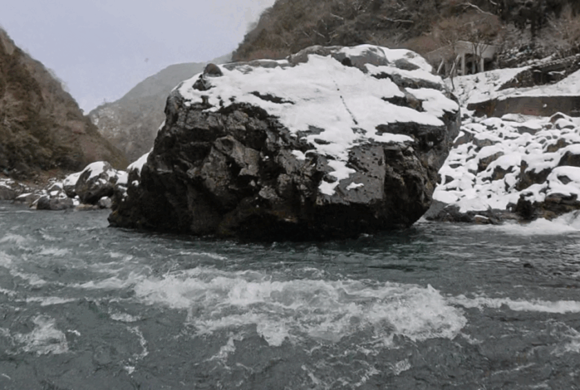 朝日の瀬にどっしり『孫六岩』🪨☃️