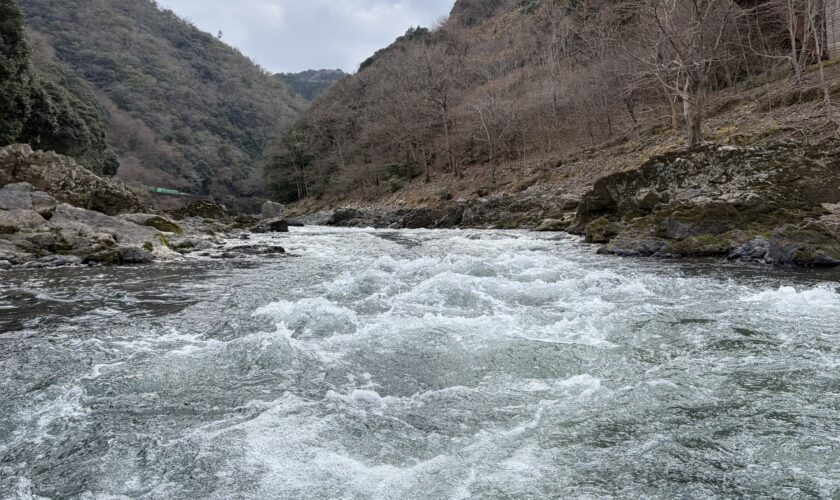 追記:その後、保津峡駅で上がったのですが、なんと電車内で櫂を受け取ってくださった船頭さんと偶然遭遇、「櫂ありがとうございました。」と突然、お声掛けくださいました。